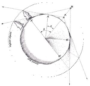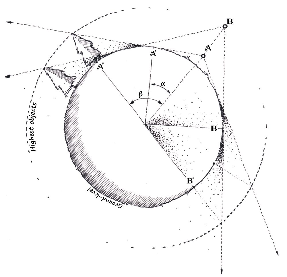 β = the angle between the camera and the furthest visible objects as measured from the planet centre point.